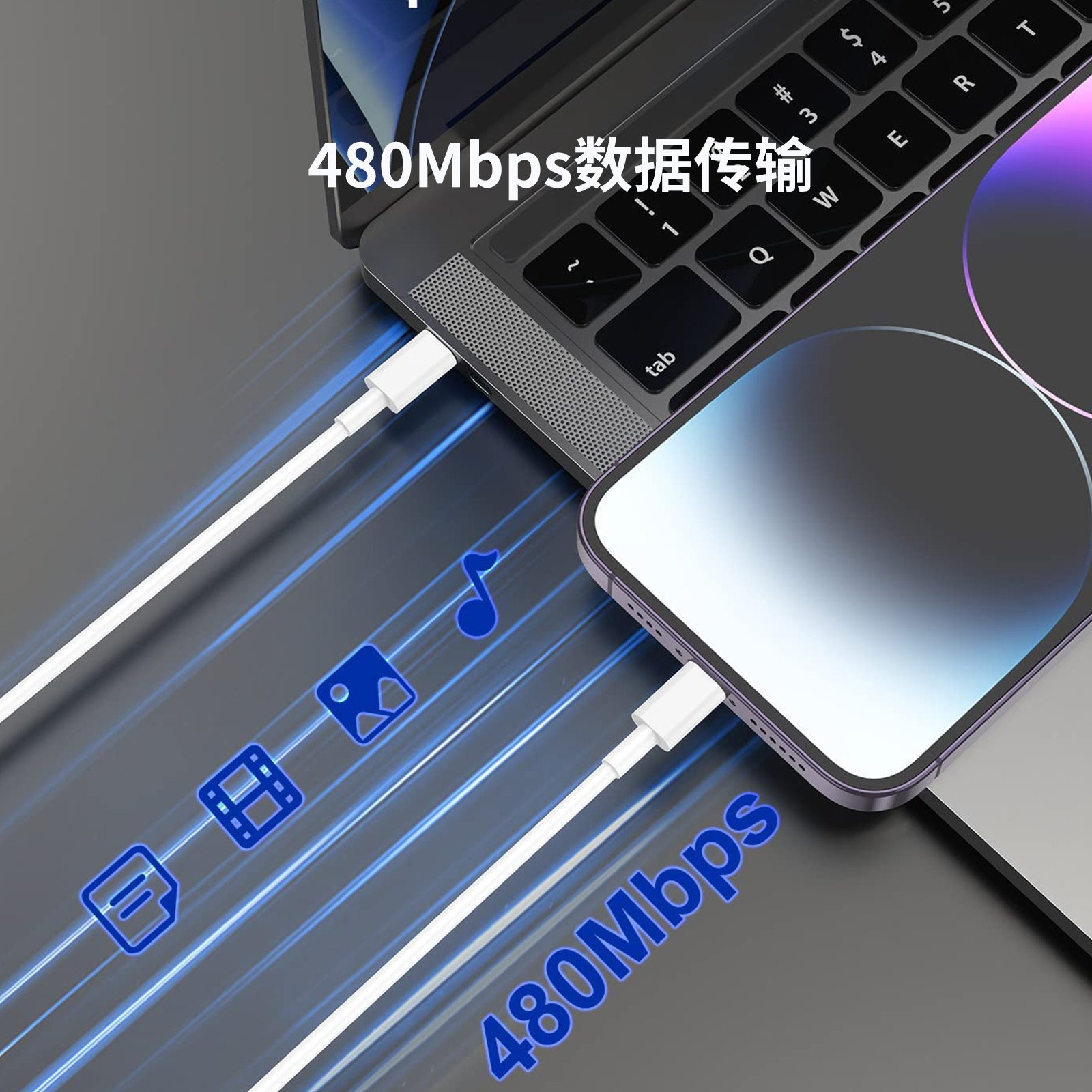 支持2.4A电流与USB 2.0高速传输(480Mbps),充电与数据同步进行,高效便捷。广泛兼容 · 一线多用